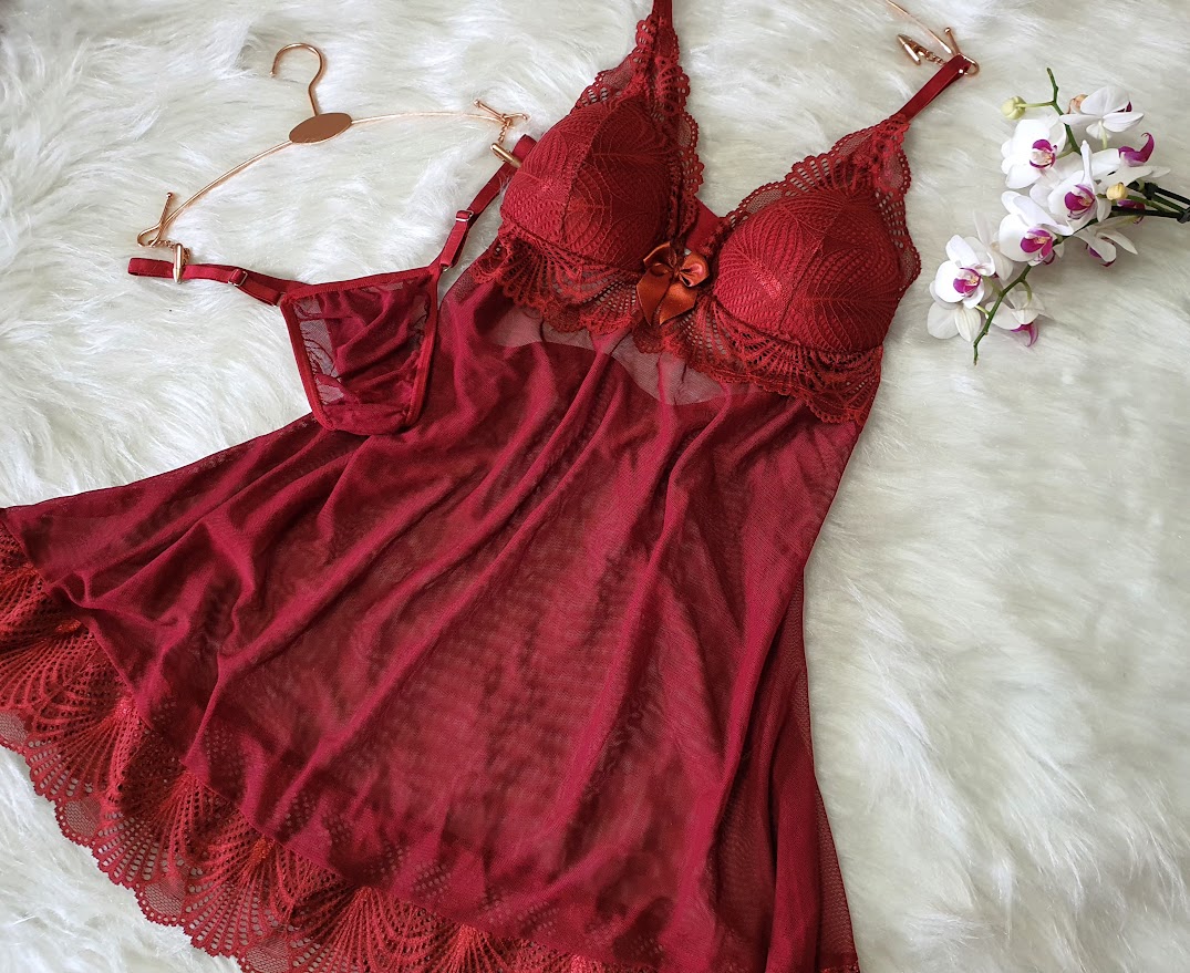 Camisola curta, com bojo e sem aro, a parte dos seios em renda, alças com regulador em metal, peça toda em tule fino e renda, costas com fecho duplo, acompanha calcinha fio em tule fino, lateral em tirinha com regulador. Uma peça super confortável e leve, que vai te ajudar em suas noites de sono.