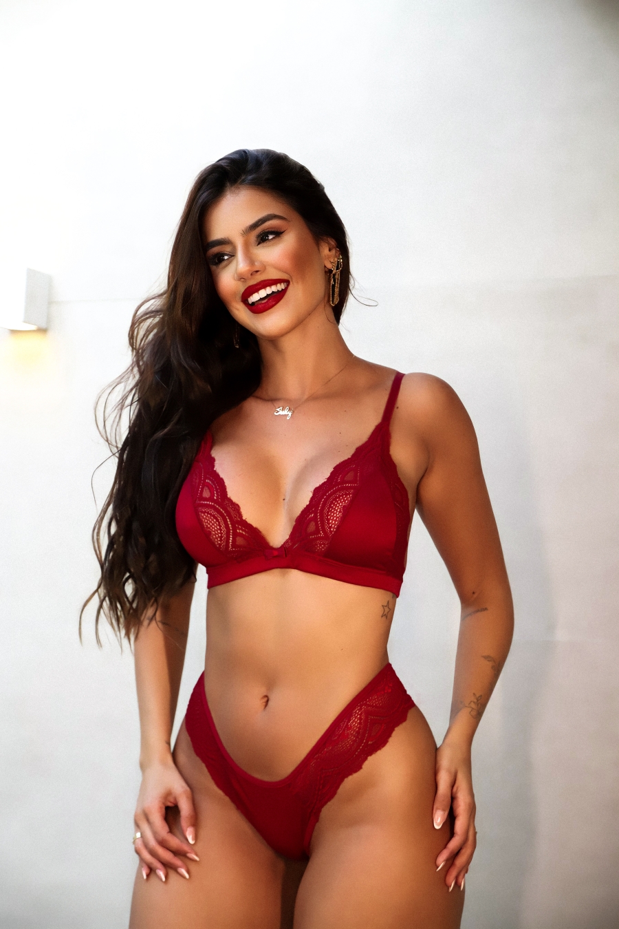 Esta é uma peça Luxo com tecido e renda de microfibra de poliamida.